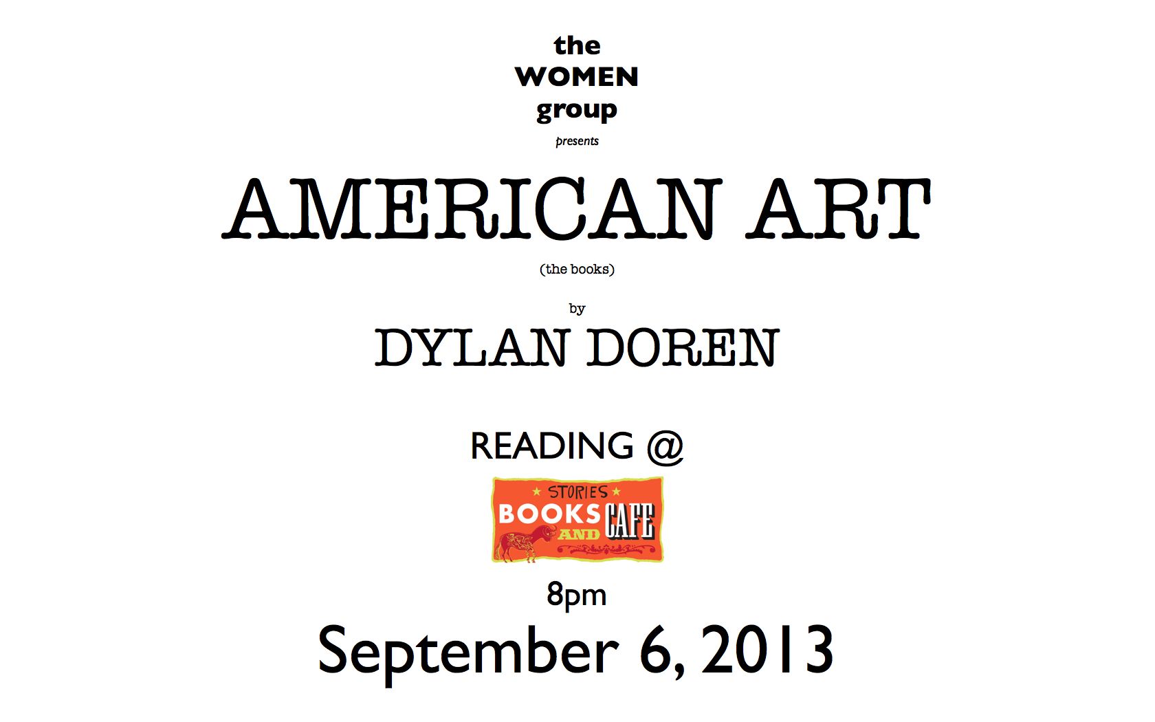 AMERICAN ART (the book) by DYLAN DOREN -READING @ STORIES BOOKS and CAFE – SEP.6, 2013- 8p.m.